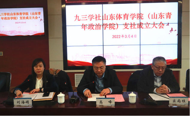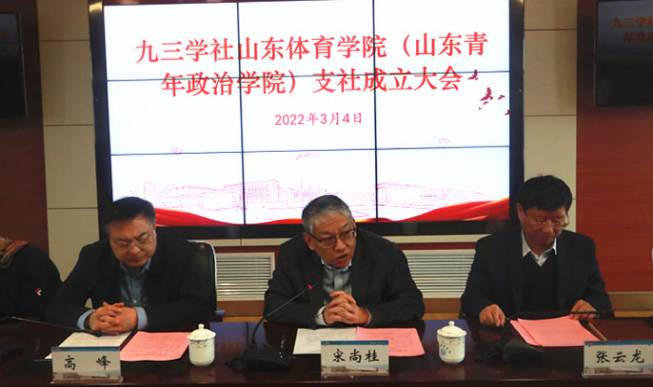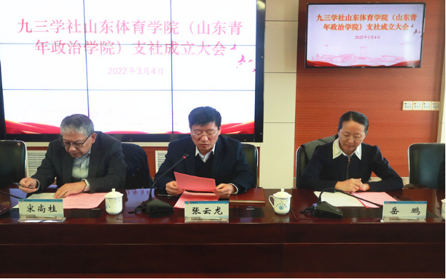 3月4日,九三学社山东体育学院(山东青年政治学院)支社成立大会在山东体育学院济南校区召开,省人大常委会委员、九三学社省委专职副主委宋尚桂,山东体育学院党委副书记张云龙,山东青年政治学院党委副书记高峰,九三学社省委组织部部长岳鹏,省政协委员、九三学社省委组织部二级调研员刘海娟,山东体育学院党委统战部副部长(主持日常工作)、合作发展处处长鹿公臣,山东青年政治学院党委委员、党委统战部部长、人事处处长张杰出席会议。